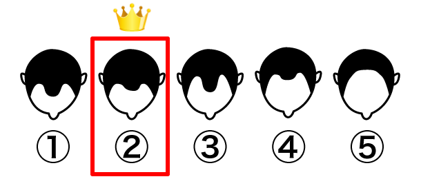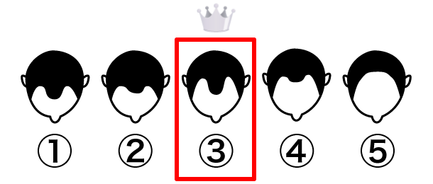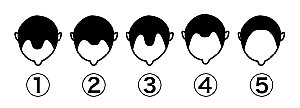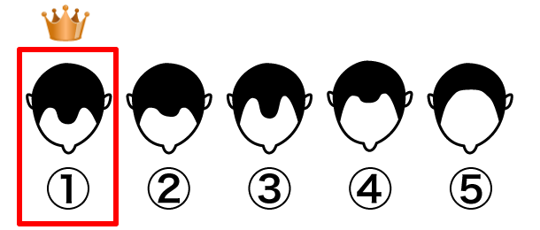 この調査は、全国の女性を対象に上の図を見せて「どこから薄毛だと判断しますか?」というアンケートによるものです。
