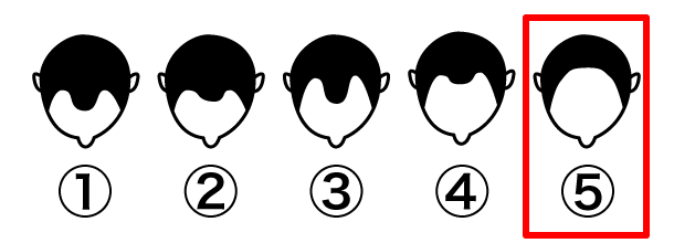 なかなか厳しい結果になりましたが、そのなかでも意外だったのが、5%の女性は上記の図ぐらい薄毛でやっと薄毛だと判断するようです!いや〜!素晴らしい!